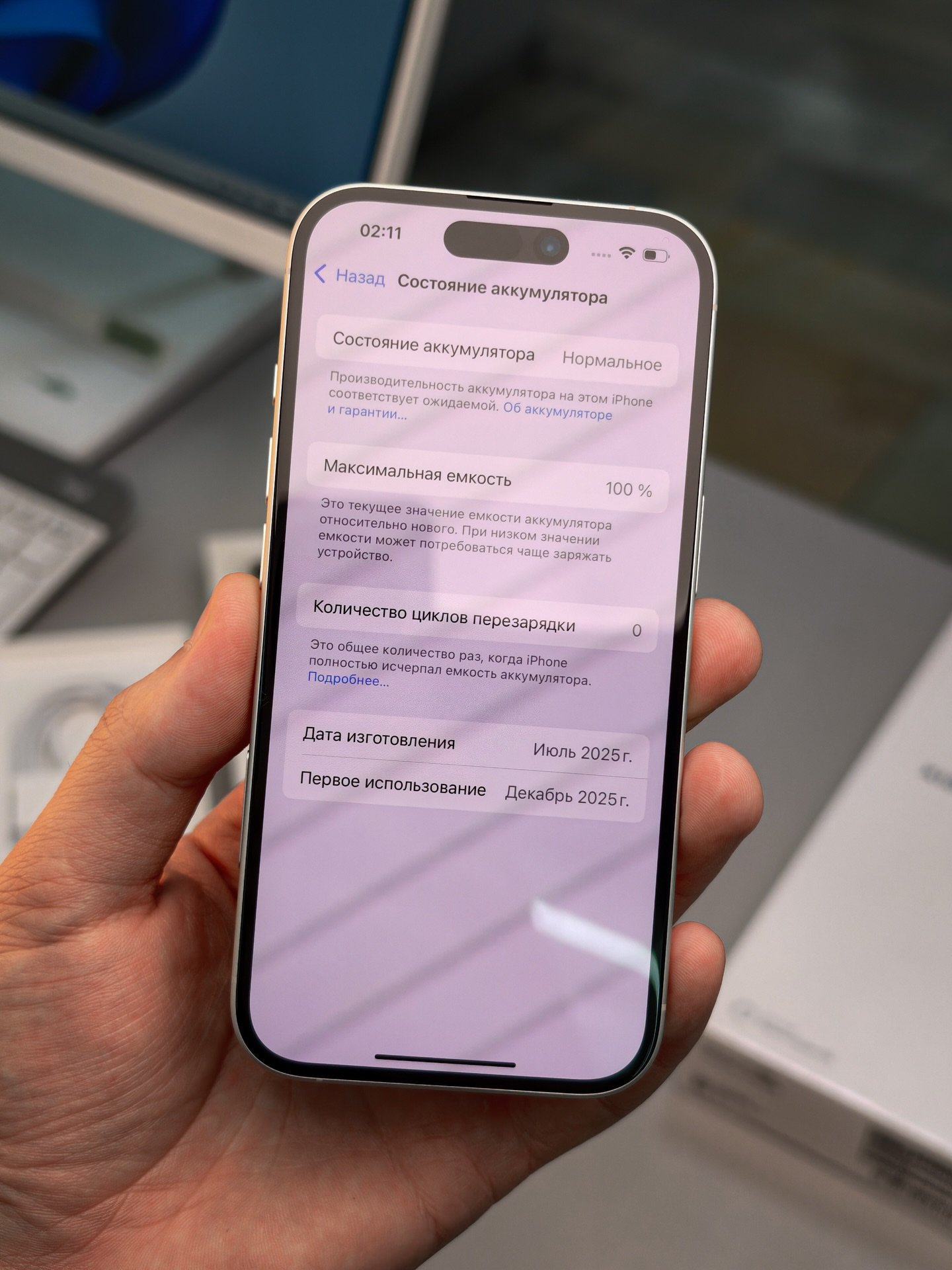 100% battery health, 0 cycles (factory fresh condition)