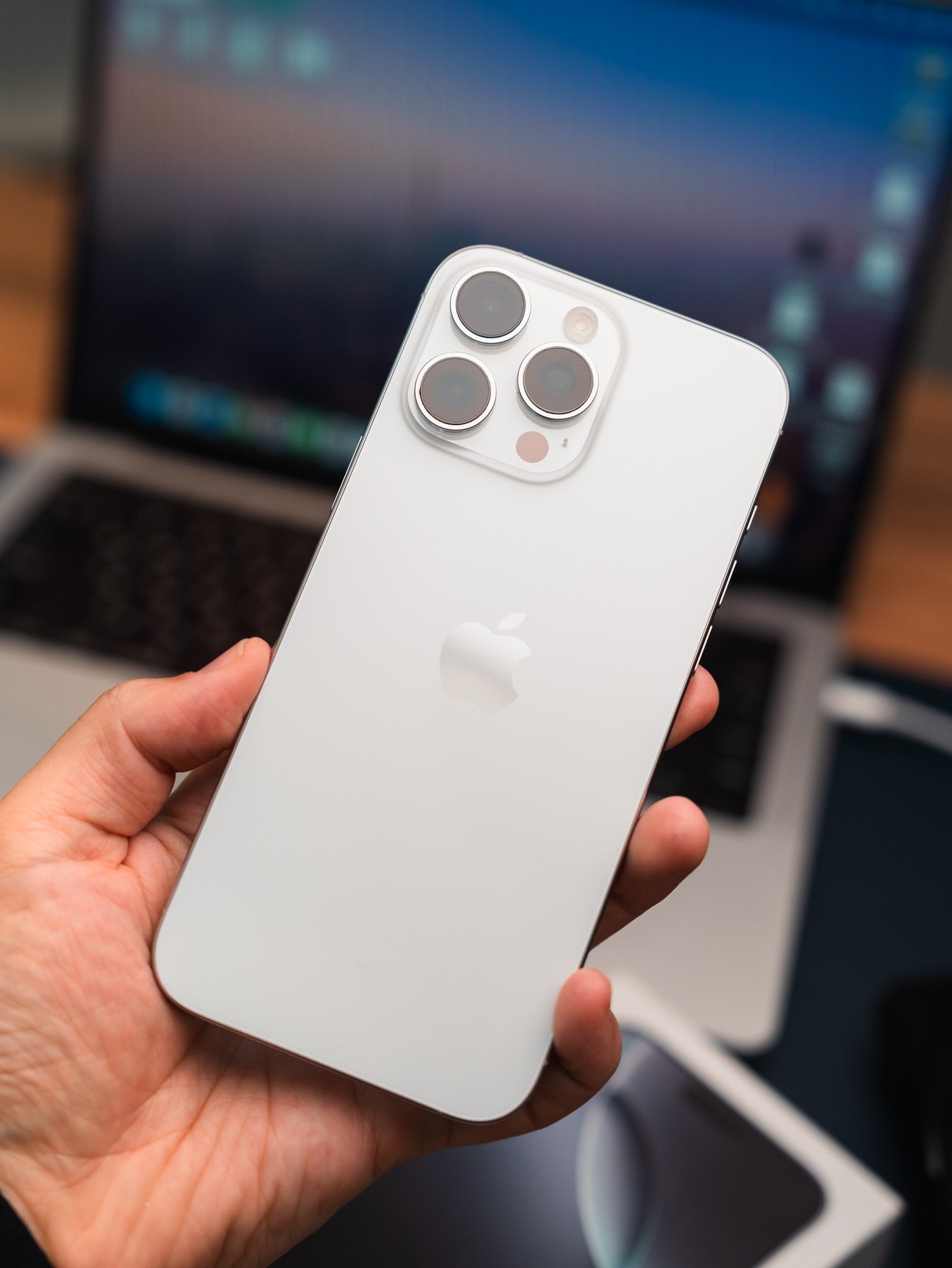 Premium pre-owned iPhone 16 Pro Max 256GB White Titanium in perfect condition. Fully tested, unlocked, with 98% battery health. Complete original set.