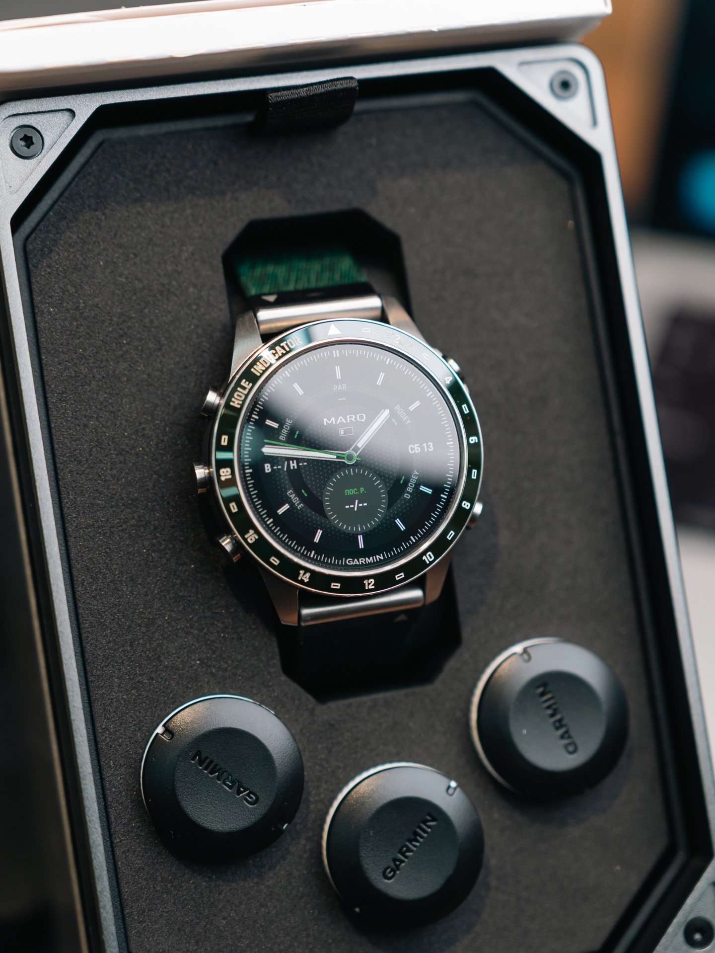Premium pre-owned Garmin MARQ Golfer Gen 2 luxury golf smartwatch. Fully tested, excellent working condition, complete original set.