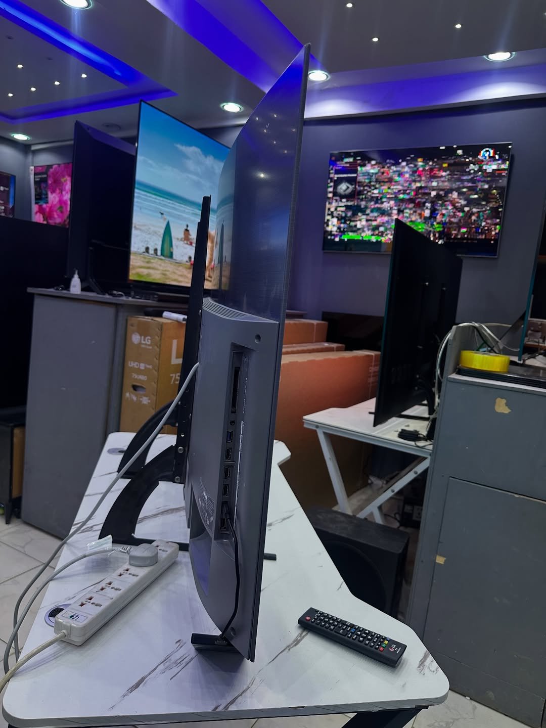 Enjoy a more immersive viewing experience with this 55-inch LG Curved Smart TV. The curved screen design enhances depth and viewing comfort for movies, sports, and series. Pre-owned unit, fully tested and functional, with possible light cosmetic signs of use. Smart features allow direct streaming and easy connection to external devices.
